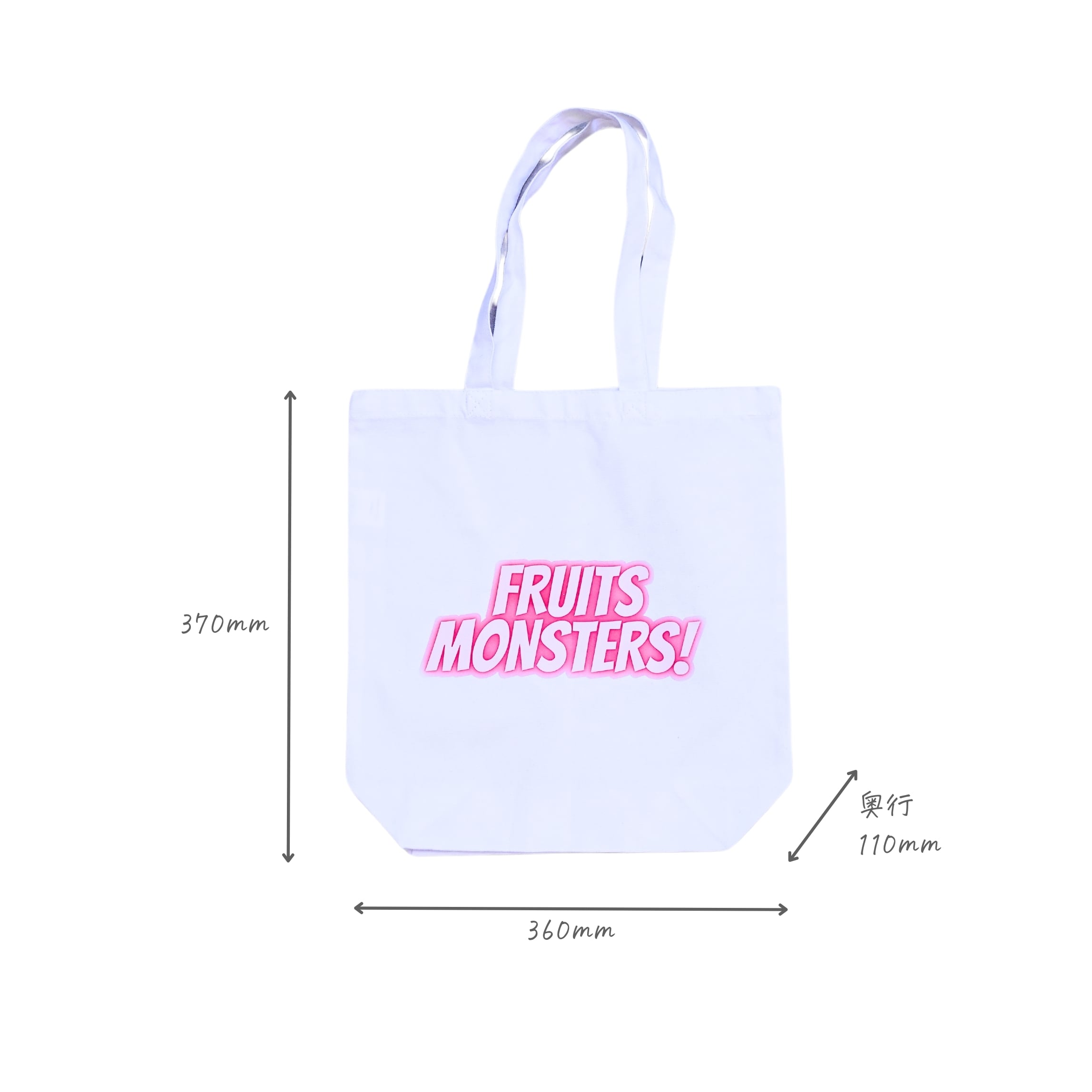 フルーツモンスターズのロゴが大きく入ったトートバック。 ロゴのみのデザインなので、どんなコーディネートにも合わせやすく、様々なシーンで大活躍。 モンスターズの缶バッジを一緒につけるのもおすすめです! 丈夫で色々と入るので、荷物が多い日も安心です。 サイズ:縦37cm 横36cm マチ:11cm